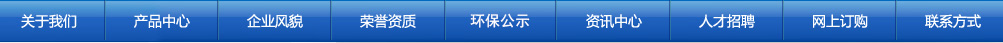 網(wǎng)站首頁 | 關(guān)于我們 | 產(chǎn)品中心 | 企業(yè)風(fēng)貌 | 榮譽(yù)資質(zhì) | 新聞中心 | 資訊中心 | 人才招聘 | 網(wǎng)上訂購 | 聯(lián)系方式 | English